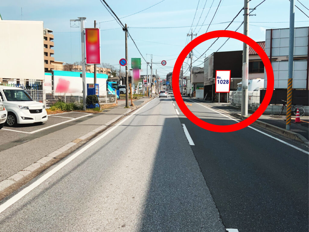 通勤・通学者をはじめ、買い物客や周辺の住宅利用者の目に留まりやすく、地域住民から来訪者まで幅広いターゲットへのアプローチが期待できます。エリア密着型のPRに適した立地の看板です!