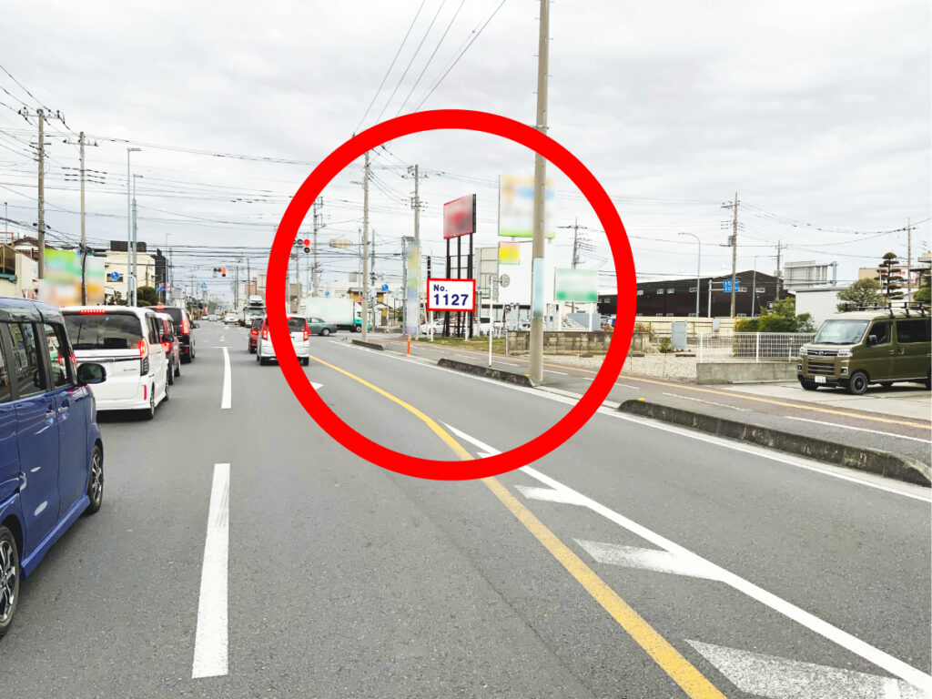 信号待ちや減速するポイントに面しているため、自然と目に入りやすく、何度も見てもらいやすい環境。周辺には住宅地も多く、身近な利用者から広いエリアの方まで、幅広く知ってもらえます。